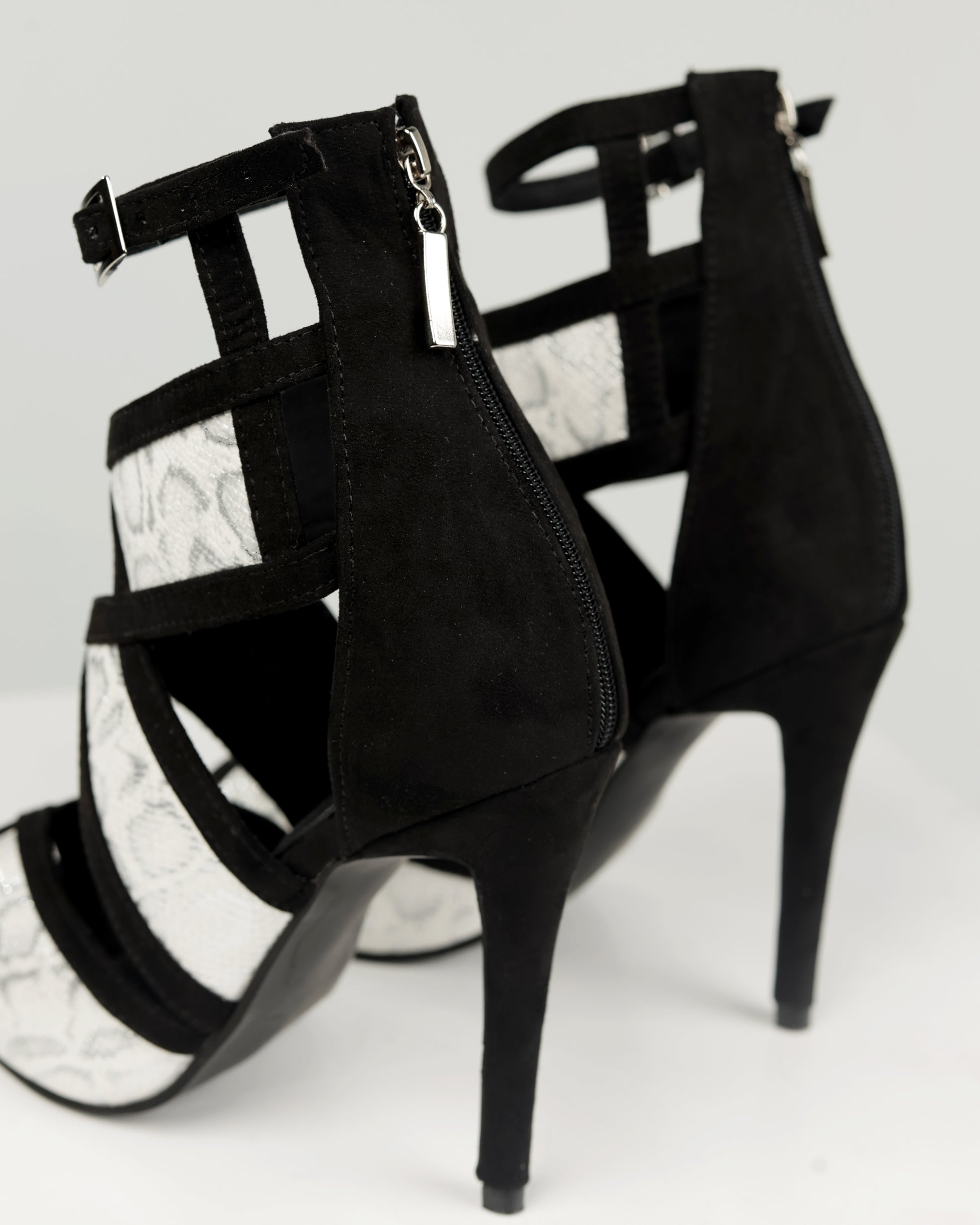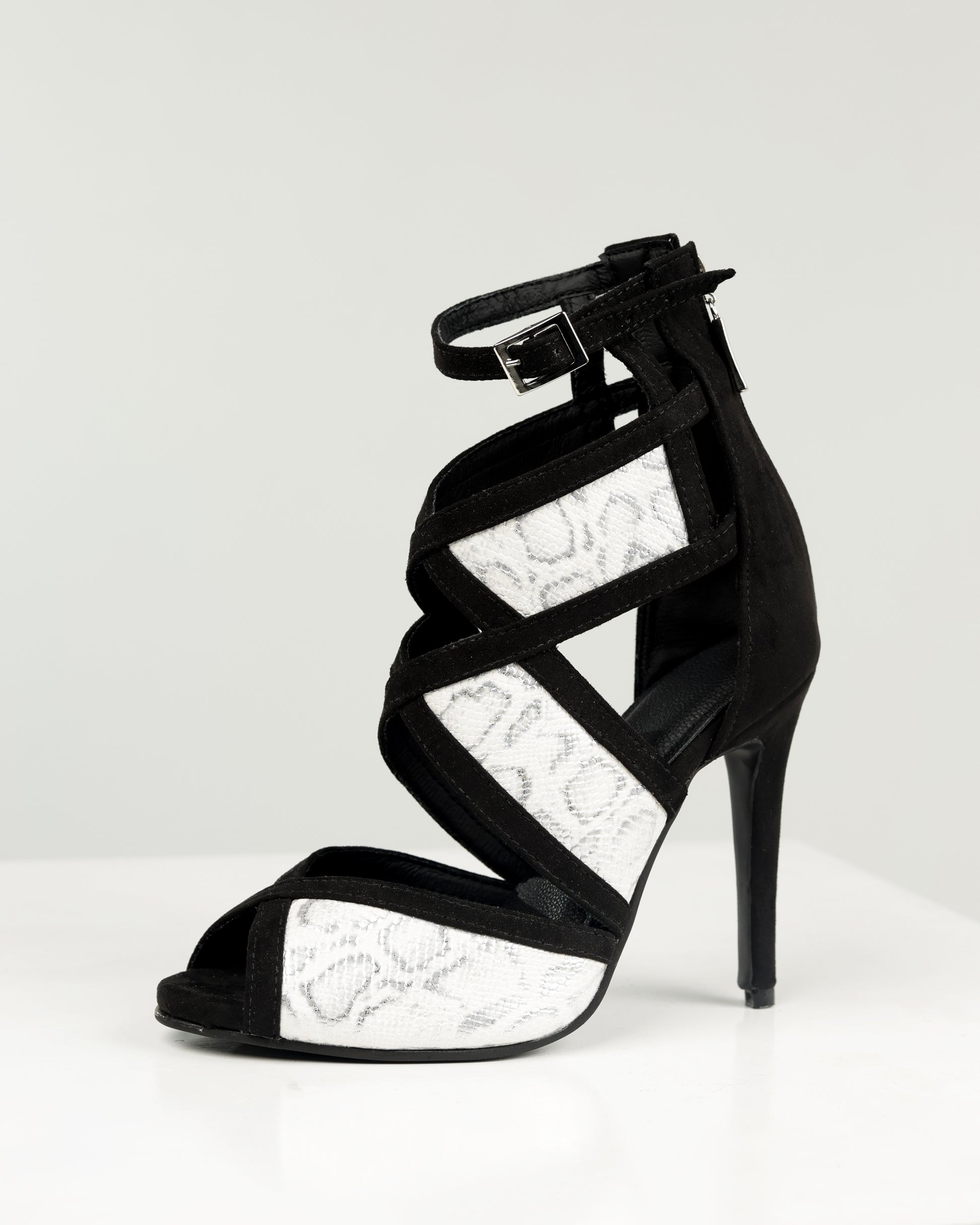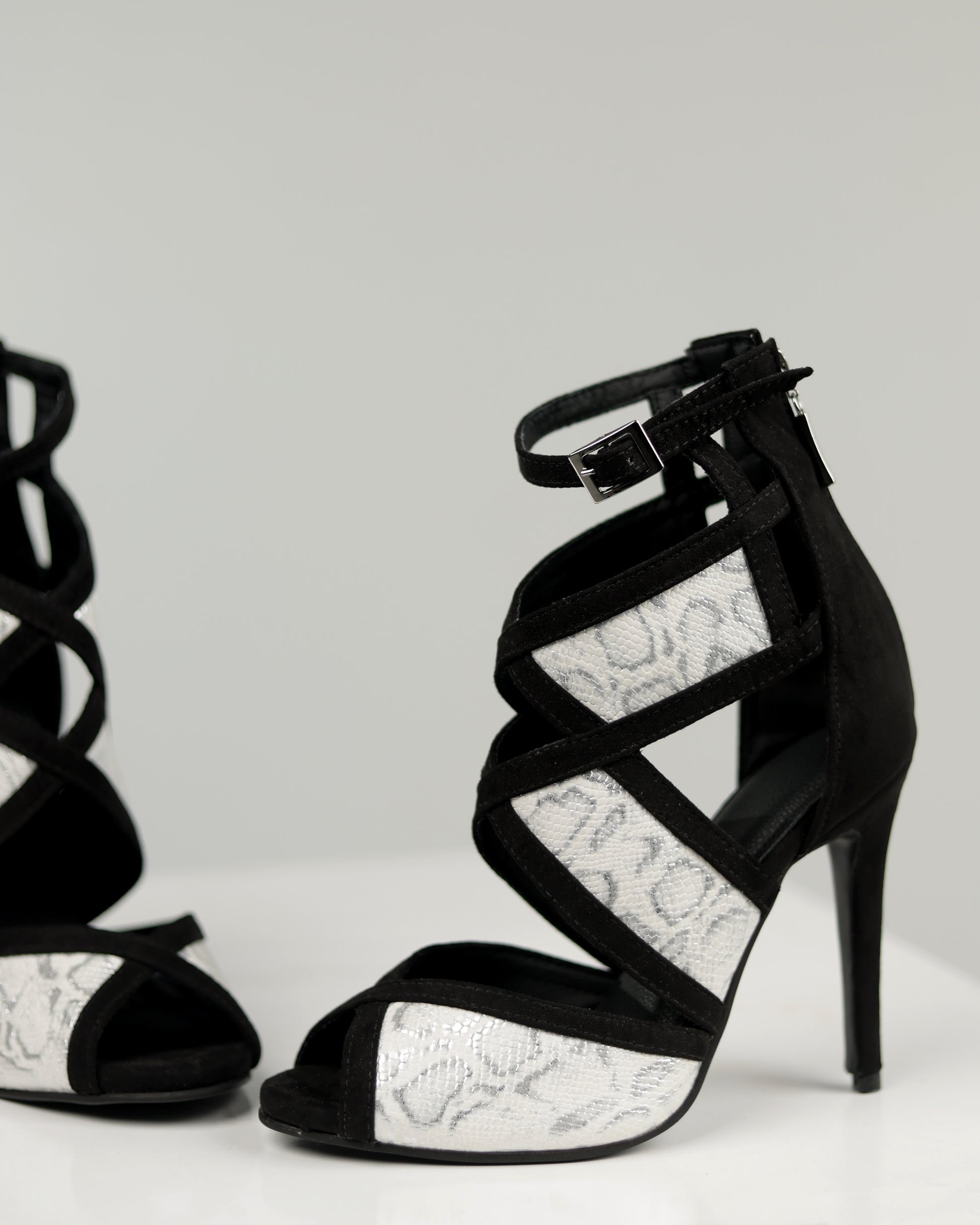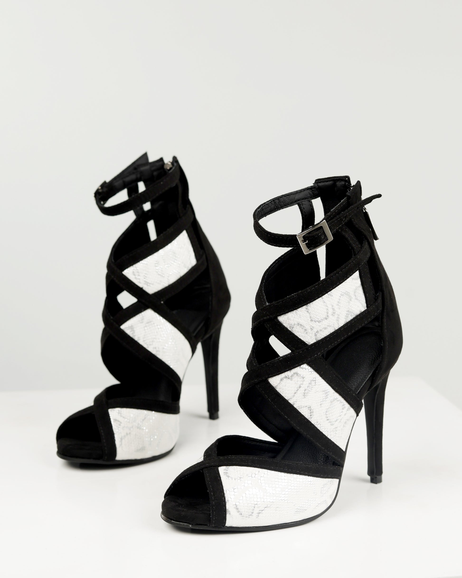 Sandalias con mezcla de colores y texturas, animal print tipo leopardo blanco, tacón de 9 cms, plataforma de 1 cms, incluyen plantilla confort para mayor comodidad, verifica tu talla en la tabla de medidas que aparecen al final de las imágenes de muestra.