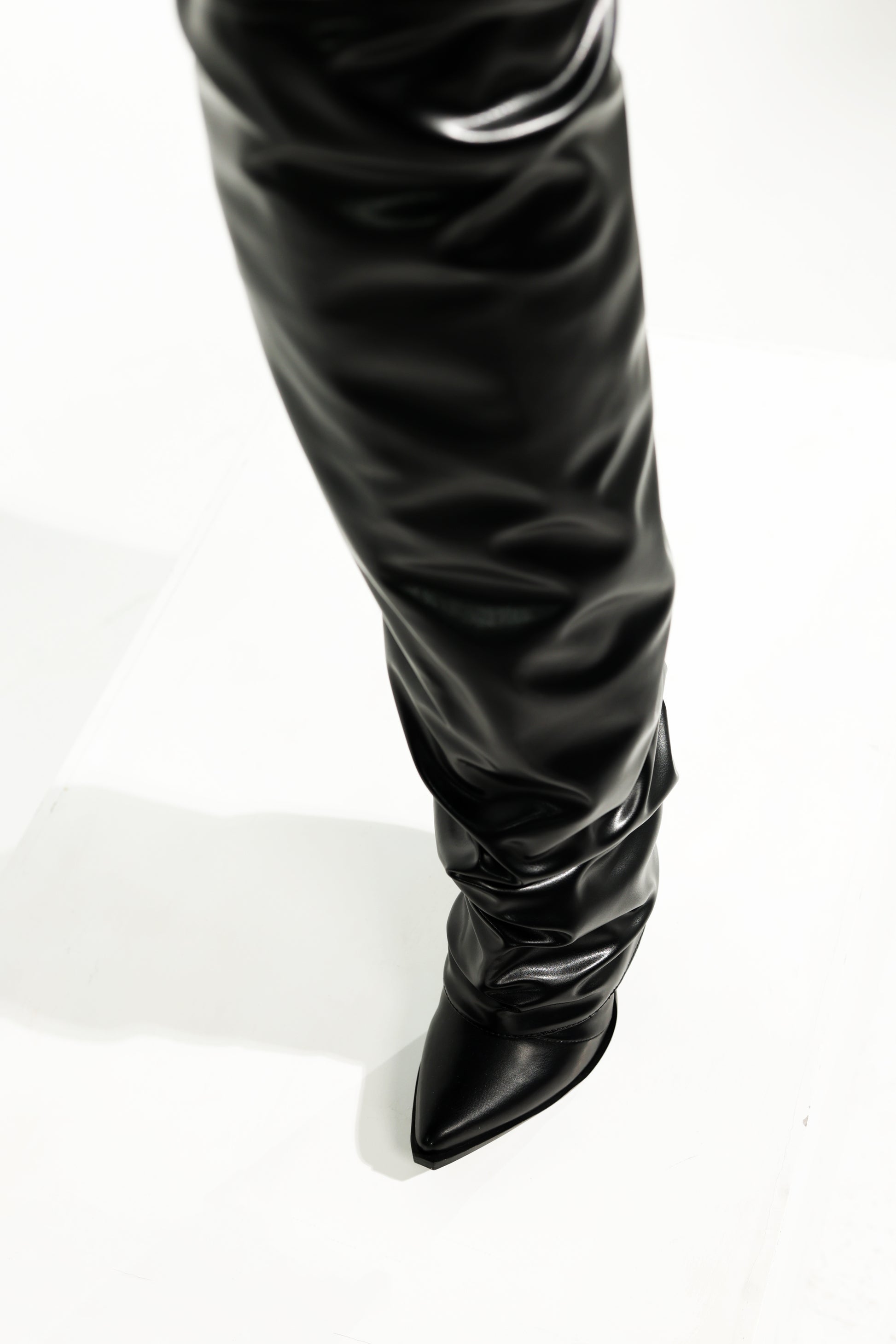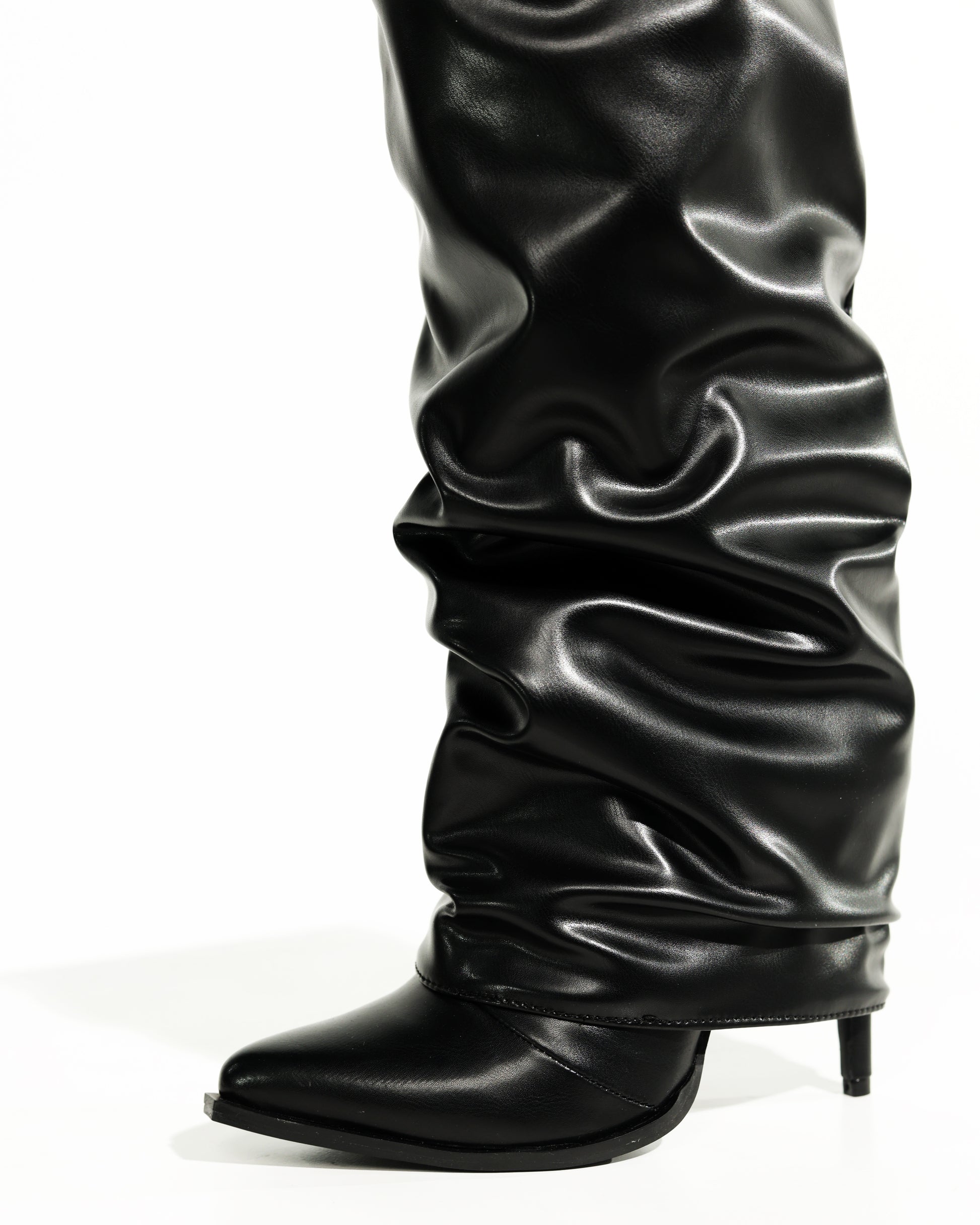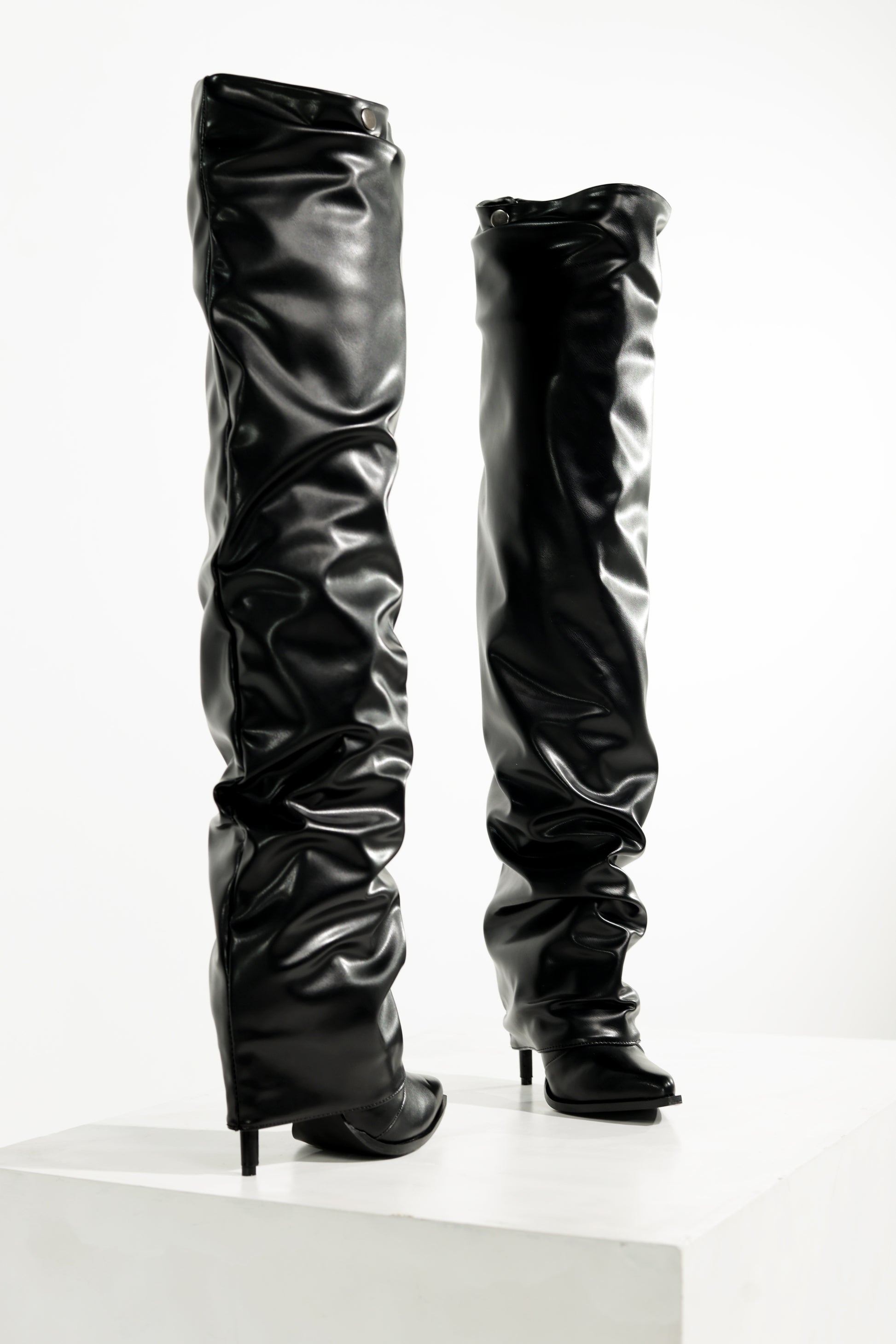 Botas doble propósito, caña alta fabricadas en material tipo cuero, efecto arruga y efecto cortina, impone tu estilo con estas botas, llama la atención de todos (as), las puedes usar con o sin cortina, verifica tu talla en la tabla de medidas que aparecen al final de las imágenes de muestra.